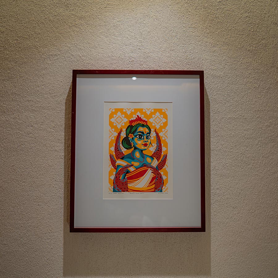 Through the use of a bold, contemporary color palette and the precision of screen printing, Dwymabim reimagines traditional motifs as modern icons. These works argue that the “craft” is not a static relic, but a living energy capable of evolving. The fusion of traditional subjects with fresh, vivid hues creates a new harmony, asserting that ancestral elements remain profoundly relevant and transformative within the modern artistic landscape.