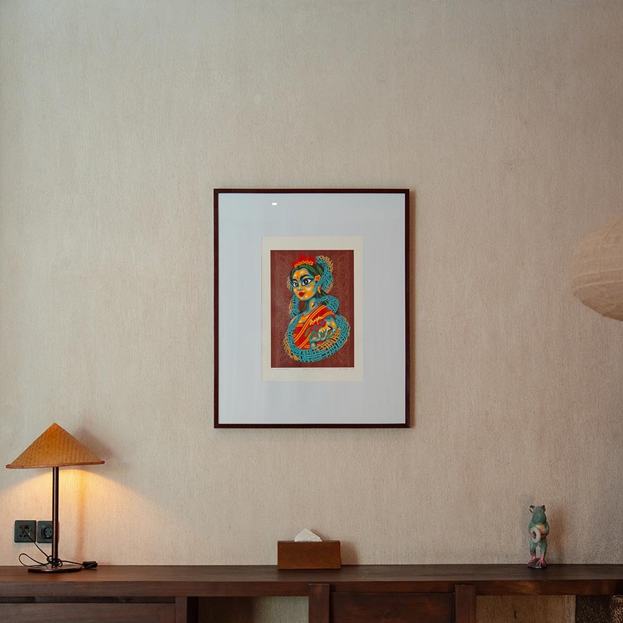 This work reimagines the Balinese female figure through bold screen printing, celebrating ancestral beauty as a vibrant, modern icon. It asserts that traditional craftsmanship is a living harmony that remains profoundly relevant today.