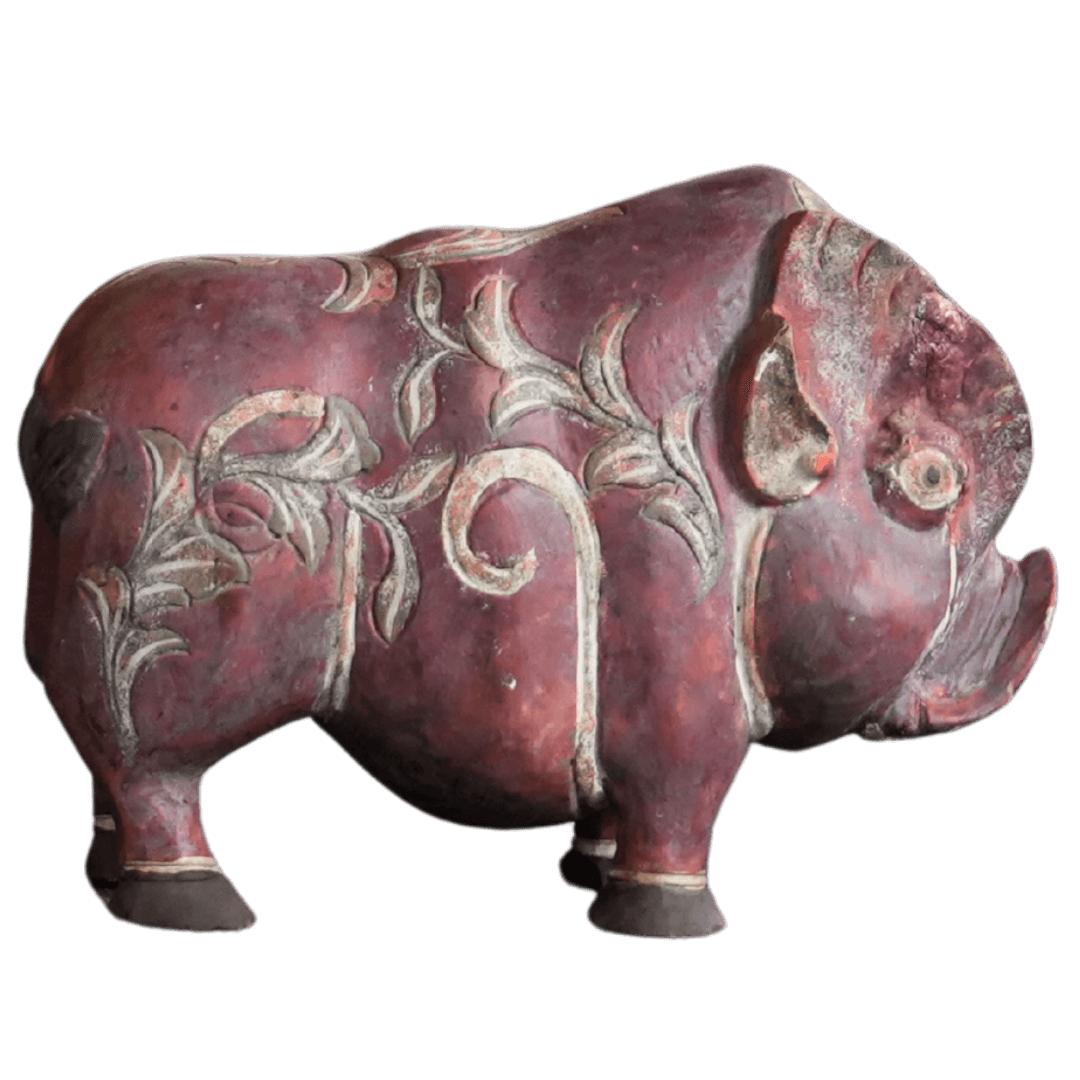 Hand-Carved Ornate Pig Sculpture