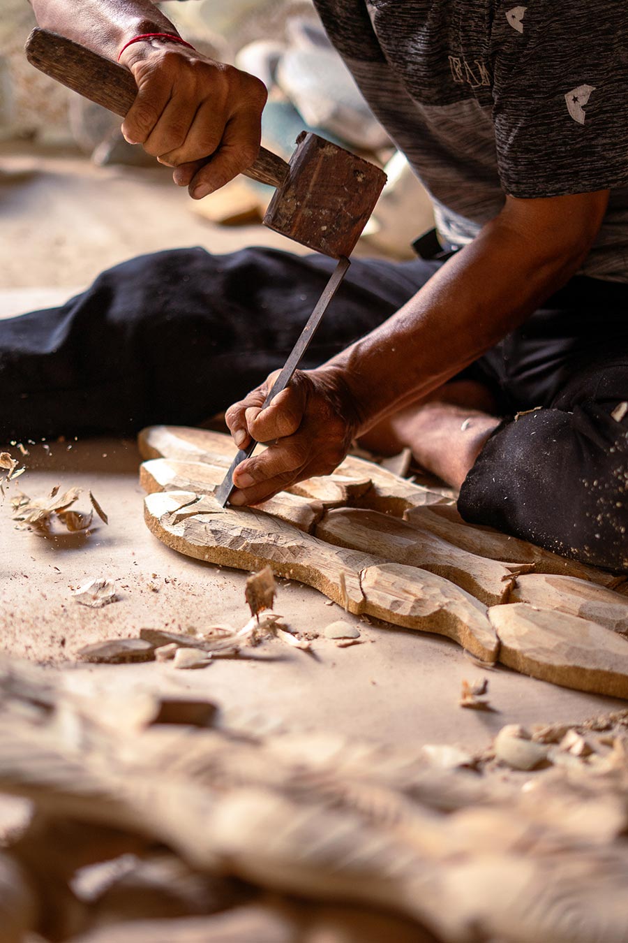 • We watched as the material was transformed through precision wood carving done by Pak Nengah Jatiana from Karangasem. This is the stage where deep focus and meticulous technique reveal the intrinsic beauty within the wood. The carving itself is an act of shaping, where every stroke is intentional.