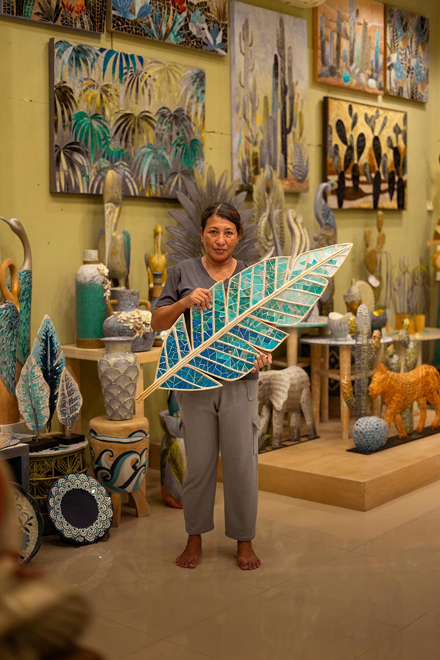 • The final stage is where dedication truly shines. After the carving is complete, a hand-sewn, natural process is applied, done by Bu Ketut Kartini from Desa Batubulan, resulting in a product that is both refined and authentic, ready to become a piece of living art in your room.