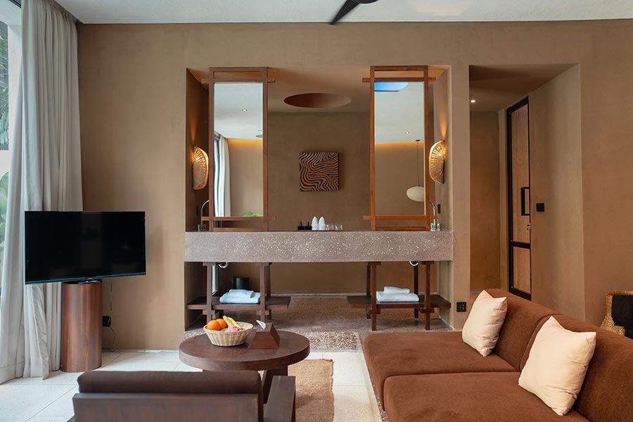Celebrate the process of making with these restored pieces, created in collaboration with CV Garuda Bali. We have carefully repainted and repolished over 100 crafted items, left in storage from a craft facility, giving them a new life to decorate your room and the hotel lounges. Each piece is a testament to enduring artistry.